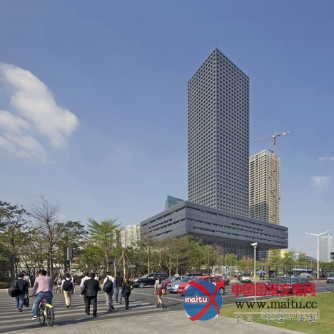 该建筑是一座高约250米的摩天大年夜楼,底座被抬升至36米构成一个巨大年夜的“漂浮平台”,顶部将会成立一个“屋顶花圃”;腰部由一条光鲜的红色光带“环抱纠缠”,整体造型犹如一个标致的烛台。这座有着46层的大年夜厦外不雅为立柱形,建筑立面由方刚正正的玻璃所笼盖。这座建筑是OMA建筑事务地点中国设计建造的第二大年夜建筑,第一大年夜建筑是中间电视台总部大年夜楼。比来,OMA建筑事务所还在深圳商业区设计着另外一栋摩天大年夜楼。