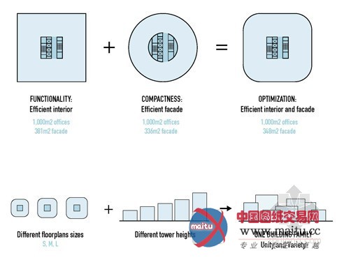 4.5公顷的地盘上扶植出了便利行人的根本举措措施,可延续的构架分成了北边的一个8,500平方米的小区域和南部的大年夜区域。南区十个办公写字楼均有9-10层高,供给了110,000平方米的办公空间,可随便分隔以适应不合公司用处。在北区的四座高楼的顶层联系在一路,构成了一个悬臂式的屋顶平台,作为公共广场。一层的商业零售空间有47,000平方米,下沉花圃的进口处有两个玻璃立方体标识,打断通往栖身区的人行道。石头外墙的启齿被精心设计,可以接收或反射太阳光,有助于建筑节能,同时与外界有恰当的视野交换。这个建筑还有一些生态性的设计手段,包含高机能尽热,精心设计过的建筑形态构成的天然暗影区,天然通风,透水路面,雨水汇集,与公共交通的联系,使此处远离城市热岛效应的地面和屋顶景不雅,等等。这些设计让这个项目获得了中国最高的三星级“绿色建筑标签”。