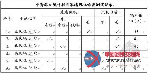 为了慎重,在大年夜量安装幕墙风机之前,我们在样板间的吊顶及门窗封锁的状况下做了尝试,测得以下数据:
