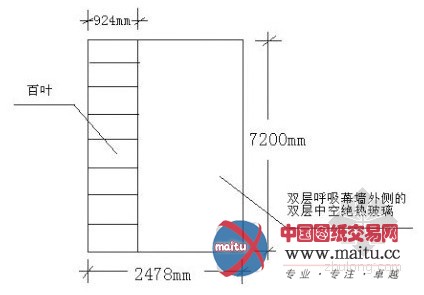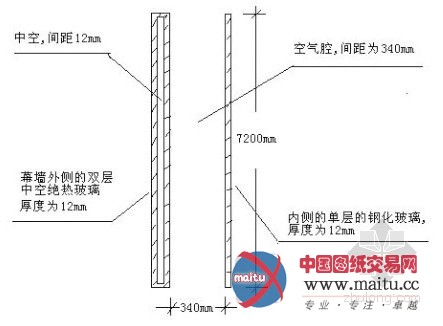 此中内呼吸式玻璃幕墙的立面采取深色铝合饰物面的框架,具有强烈的竖向分隔感。框架之间为***的玻璃,此中一小部门为罩上百叶窗帘的可开启扇,为天然通风和排烟供给了前提(见图1)。每个框架的尺寸为2478mm×7200mm,外侧为双层中空尽热玻璃,内侧为可开启的单层钢化玻璃,二者之间为空气腔,空气腔的宽度为340mm(见图2)。空气腔与室内的空气相连通,空气腔的顶部按幕墙单位还安装有轮回通风机,进行强迫换气,保持楼内的温度和湿度恒定。