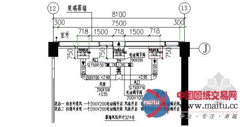 1)因为中青旅大年夜厦幕墙呼吸系统室内顶部的空间不足,因此不克不及设置通风管道,只能采取吊顶集气箱,让气畅经由过程百叶上端718mm×100mm宽的吊顶集气箱后再排出室外。吊顶集气箱直接连接到以玻璃宽度为中间的外墙框架上。