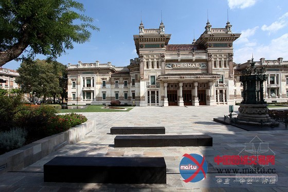 这片广场由凸起开放空间形态的区域构成:一座对称的天井重建了全部空间的中间部门的一致性,台阶安插在机构的进口使得它连接了新旧两处城市中间,最首要的一座喷泉则宣示了这座城市久负盛名的温泉浴,描述了这些建筑的意义地点。