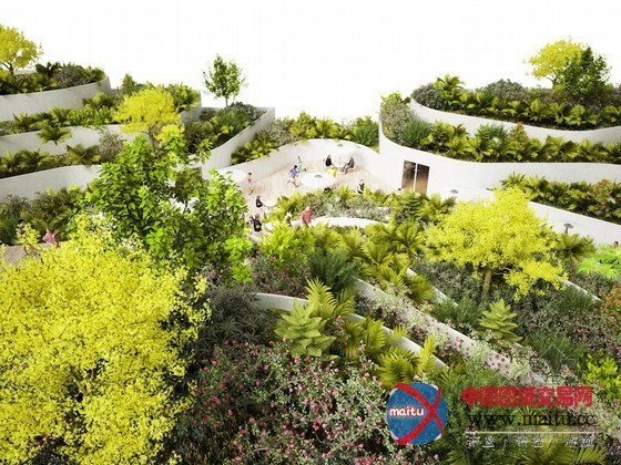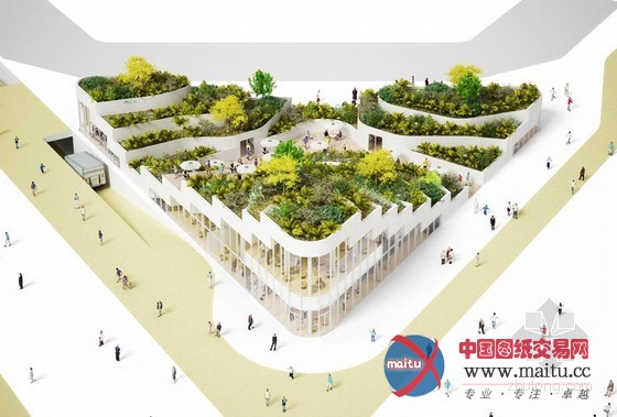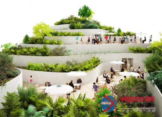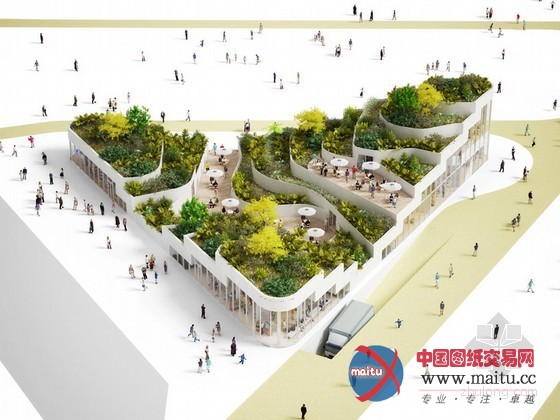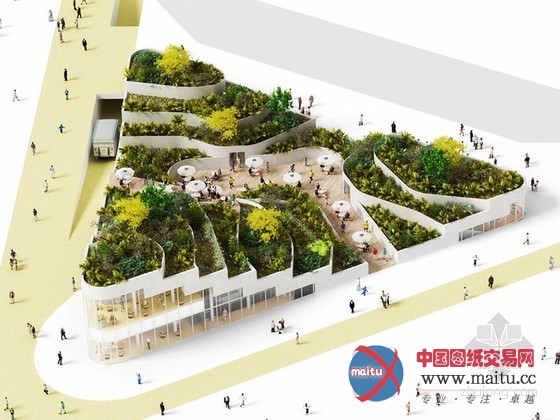 由荷兰NL architects建筑事务所设计的“三亚超等市场”将于2014年落成,这个项目位于中国海南省三亚,建筑师在一个抬升的梯田式花圃下方扩建了一个地下公共空间。建筑位于三亚度假区内,将包含三座21层高的室第大年夜楼,并带有半开放天井。室第建筑之间是大年夜量的景不雅绿化和园林建筑,为栖身者创作发现了一个集社交、商业和文娱勾当为一体的交互式糊口环境。三角形的超市建筑将包含良多公共户外空间,它与程度延长的传统超市不合,有一部门空间在地下,与每座室第楼相连,废料排出和商品运输等后勤功能都隐躲在这个地下空间中,不会呈此刻地上。屋顶由一系列凸出的台阶构成,上面莳植了良多绿色植物,巨大年夜的玻璃门墙、小零售商展掩映此中,绿植还标示了建筑的进口。在周围的室第塔楼间,这个超市建筑成为一个抬升的绿色花圃,同时将一系列功能空间和通往超市核心的交通道路透露在外。