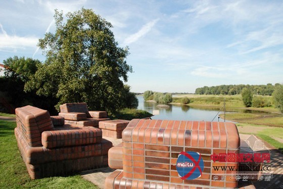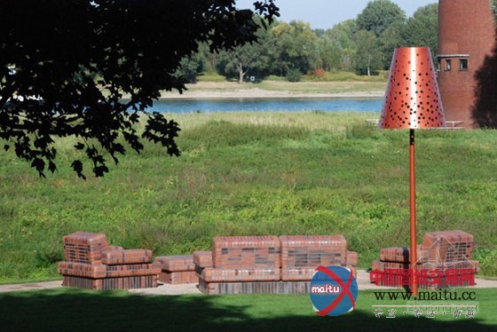 2012年秋季,科隆市新建了一座由德国景不雅设计师Dirk Melzer设计的小型公园。它位于城区Worringen的旧莱茵河岸边。这片区域好久以来都用砖砌筑房屋,Melzer决定用砖和和它色彩附近的材料进行设计。他一样希看在公共空间中创作发现一种私家区域以供人思虑、歇息乃至是交换。是以他尽力在公园中搜索“舒适之本”,然后他专门为这里设计了一块草毯、一条长椅、两把扶手椅和三座大年夜型落地灯。所有的物品都提早在工厂出产好。这些家具具有近2吨的重量,如许可以充分抵当莱茵河的水位不浅的洪水的冲击。