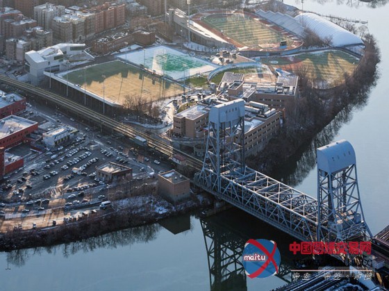 建筑位于曼哈顿最北边,成为以户外活动为主的贝克体育综合举措措施的全新门户。这个方案将身心作为设计的首要概念,建筑被锚定在地下几个特定的位置点上,经由过程空间的积压来表示建筑体量的活动线。“线”的概念还表示在沿街立面的设计上, 一系列户外楼梯冲过各个别量,撑持起了一个持续的交通流线。在48,000平方英尺的加建空间中包含体能操练区域、各部门行政办公室、会议室、套房和教室。建筑师基于对体育活动的不雅察来组织空间,办公室和教室可以俯瞰装满活动举措措施的夹层空间——所有空间都能远看户外场地。别的,专门设计的陈述厅加进了超大年夜型座椅,便利体型较大年夜的橄榄球运带动。立面大年夜部门采取滑腻的锌板材料,这些富有质感的金属板包裹了全部沿街立面和楼梯,在周围清一色的砖房子中脱颖而出,同时为陈腐的街区引进了全新的建筑说话。