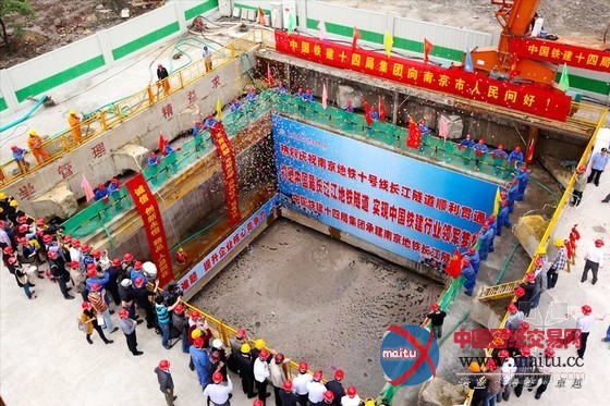 5月10日,中国最长越江地铁地道--南京地铁10号线过江地铁地道贯通,该工程由中国铁建十四局集体承建。