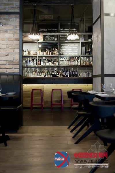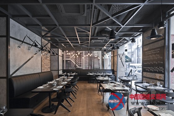 关头词:牛排酒吧餐厅设计 黑色材质装潢餐厅设计
