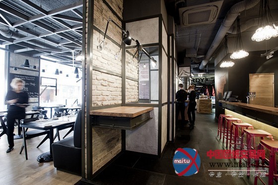 匈牙利KNRDY牛排酒吧餐厅设计,牛排酒吧餐厅设计占地250 ㎡,由须藤室内建筑设计,全部餐厅都利用了 L 型钢铁机关,黑色的材质据有了空间的大年夜部门,营建出戏剧化的舞台结果,和顺的球灯光线热和并能契合财产风的主题。