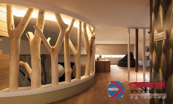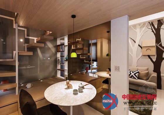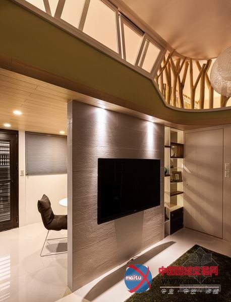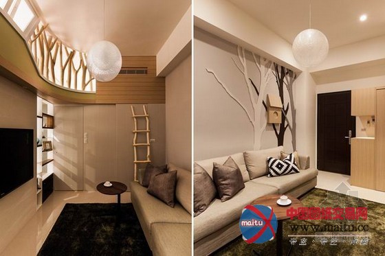 这间位于台北市中间的新成屋,在一开端会商室内设计标的目标时,屋主便出希看能营建出一个让人放松的天然气焰空间,因而设计师以丛林及天然发想,加上与屋主的沟通激荡,成长出“城市树屋”的概念作为全部案子的设计主轴。大年夜大都的人,都具有爱好亲近天然的本性,在这个知足 Kidult 需求的设计案例中,设计师说:“我们不克不及搬进丛林里,那就把丛林搬进家里吧!”整间房子里,处处可见气焰清爽热和的天然元素,除采取柔和的天然色系家具外,大年夜量木作材质的应用也让空间的气焰更趋一致。出格以雷射切割木作,做出具有层次的树林造型墙,并且以畅通领悟布景的趣味鸟屋奇妙粉饰电源总开关,让人激赏设计师的巧思。空间总共只有50㎡,因为楼层挑高,设计师以夹层编制将空间辨别为上下两部门。在争夺更多可以应用的空间,思虑若何增加空间利用效能的同时,以虚实交叉的编制,及大年夜面积镜面墙面应用,营建出穿透感,让空间在视觉上显得较实际面积更加坦荡。改变主卧与餐厅的隔间,藉由餐厅区及透空的楼梯将阳台的光线引进客堂,让大年夜量天然光充盈其间,呼应着天然诉求的气焰。操纵大年夜面茶镜,延升视觉的同时也达到放大年夜空间的结果。