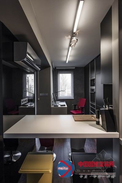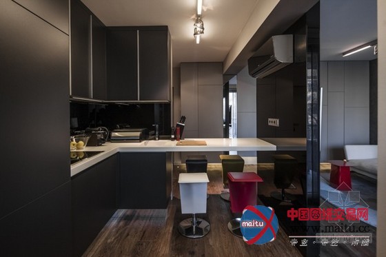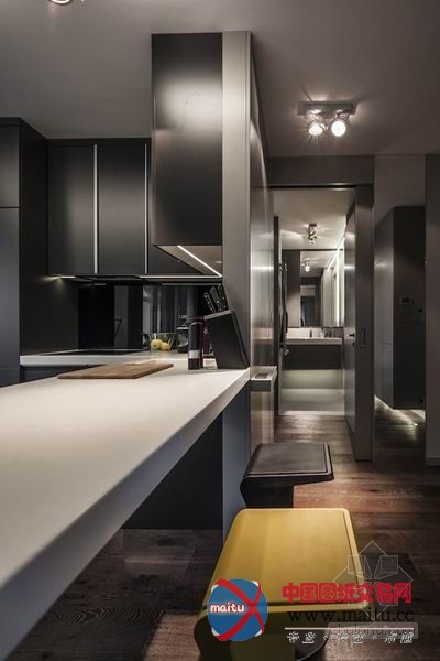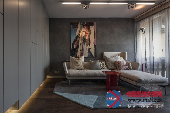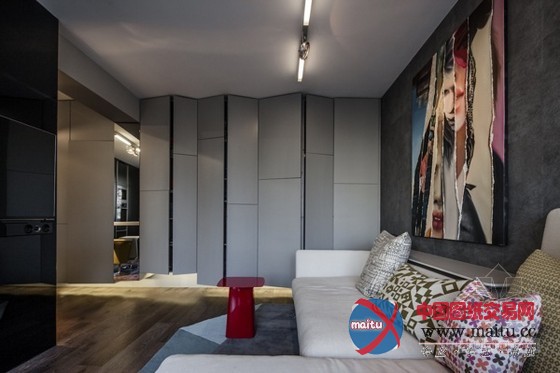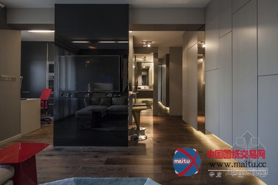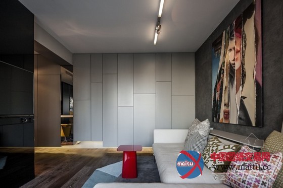 这间灰色装潢的40㎡独身公寓设计由须藤室内建筑负责设计,感触感染上空间要宽阔的多,设计理念是“空间叠加”,没有任何多余的走廊和墙壁。存储无处不在,可是概况都刷成了灰色,重视一体感,很合适独身汉栖身的一个阳刚的空间。