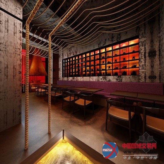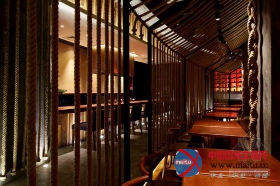 上海Kemuri餐厅设计,“Edo Robata Kimuri” 在日本是一家十几年汗青的闻名餐厅,这是在中国开设的第一家分店。业主对设计有两个要求:一是按照《杀死比尔》的灵感设计,将亚洲文化揭示给世界;二是契合餐厅名称——“烟雾”。暗中的色调中,深红是东方的传统色,同时表示出必然的血腥与暴力。空间整体有一种昏黄感,麻绳的大年夜量应用很有东方气息,照明的设计邃密讲求。