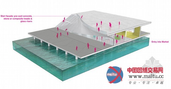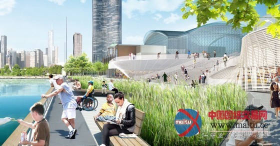 James Corner Field Operations公司和nARCHITECTS事务所近日揭示了他们为芝加哥长达1000米的水兵船埠设计的打算方案。这个略微改进的方案看起来摒弃了一些更具有“戏剧性”的东西,好比漂浮水池、风情沙岸等均被打消以削减预算。这个项目仍是有一些较着特点,包含朝南的防浪墙,受罗马的西班牙式台阶影响的大年夜台阶,和一座具有感应能力的喷泉和滑冰场。方案中的防浪墙将会连接船埠与地势更高的游乐土,它们供给了宽阔广大奔放的南向社交空间和杰出的不雅湖点,这里也能够通向纵深152米的零售空间。颀长的玻璃旌旗灯号塔和一系列湖畔小亭也极具特点。这些亭子采取了起伏波浪状的不锈钢顶棚,它们既可用作船票售票亭,也为人们供给了遮荫的场地。一座座起伏小亭反射着日光,仿佛将密歇根湖搬到了湖岸上。
