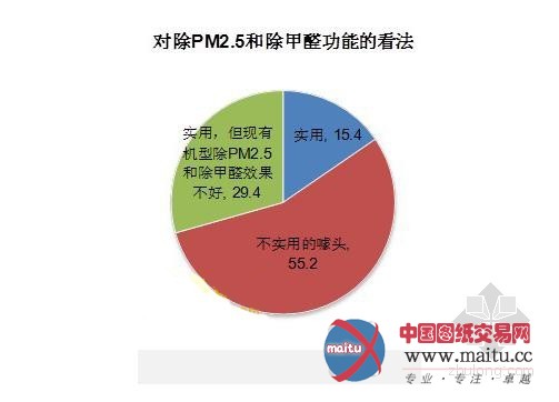 空调附加功能:近五成用户觉得空调除PM2.5和除甲醛功能合用,但亦会担忧产品结果;