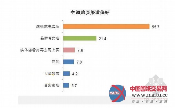 空调采办渠道:近8成消费者选择实体店采办空调;