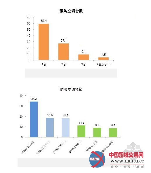 59.4%介入调研的消费者仅筹算采办一台空调;在预算方面,34.2%的消费者所留预算为2000-2999元,相当于一台中低端挂机的代价,预算在6000元及以上的消费者比例也相对较高,也与一台中端定速柜机代价相当。