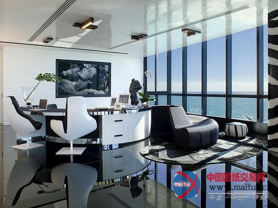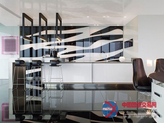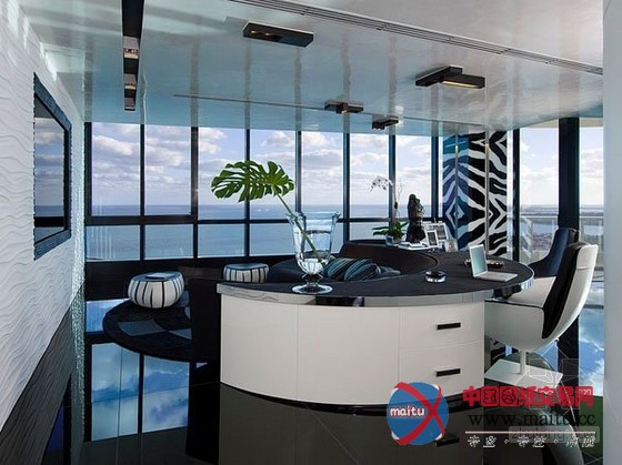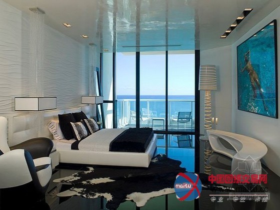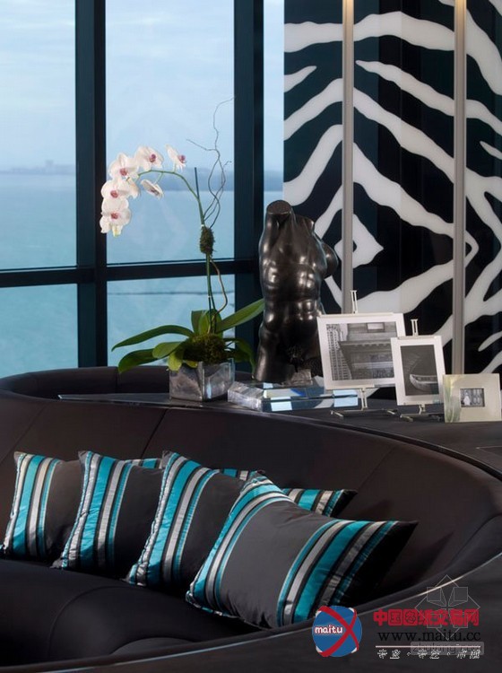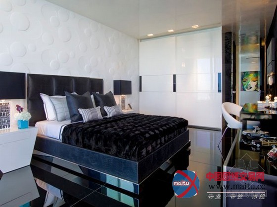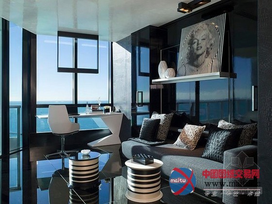来自迈阿密的豪华黑色调高层海景公寓设计,楼层很是的高可以直接俯瞰到海景,属于景不雅房。全部公寓的装修很有美国精力,在各个处所都流露着那种独有的气质和期间精力。黑色的地面砖和黑色的门加上顶部的小面积黑色线条让全部空间布满了神秘感。墙面上大年夜幅的现代艺术绘画十分的狂野。不管是墙面仍是家具的选择,都有黑色的应用,黑色仍然成了贯穿全部设计的基调。