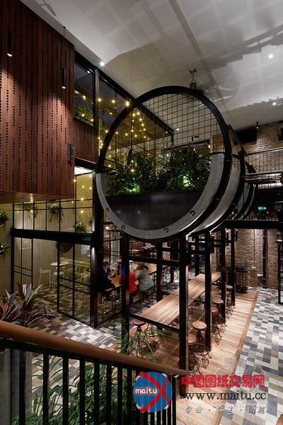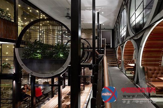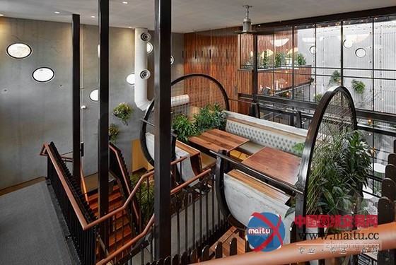The Prahran酒店位于澳大年夜利亚墨尔本,全部酒店设计亮点就在于这 17 根半“混凝土水管”的就餐区,不但室外看起来十分壮不雅,坐在里面应当也有奇奥感触感染。特别是水管内部用长长的木条装潢,更有一种动弹起来的错觉,仿佛是进步的水车。空中的半截水管与铁蒺藜构成的就餐区也是趣味实足。