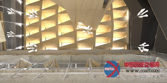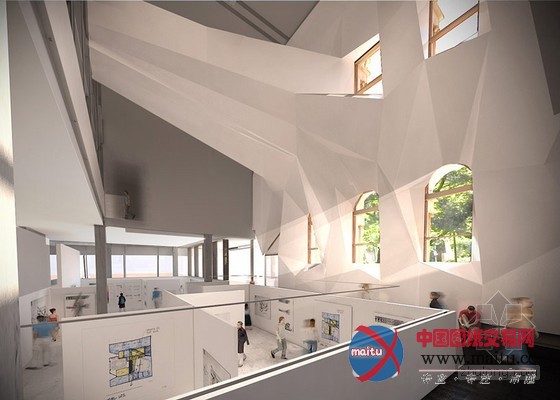 这个建筑需要知足讲授所需要的环境前提,具体包含可用于进修和鼎新讲授的各学科工作室。建筑里有一个中庭,和一个木盒子式的工作室大年夜厅,可作为自由讲授空间,可以或许让室内接管天然通风和阳光。一层有14320平方米的空间,因为建筑外表是多孔挡板,室内布满了柔和的散射光。就如许,新的外表给了这个汗青建筑艺术化的室内光线结果。