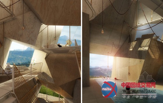 这个建筑有着360度标的目标的“翅”,每个都有不合标的目标的视野和用处。传统概念里的墙、楼层、天花板在这里都被倾覆,构成了奇特的室内空间和关系。“楼层”在这里是个更有活力的元素,各楼层仿佛是新颖的舞台,产生了良多半层空间。常规的天花板也被部门删除,倾斜的墙壁和玻璃窗连成一体,就是所谓的“天花板”。这个别致的概念让建筑形态十分自由,各个标的目标的轴线都交于中间的起居空间。从这个有裂痕的空间看出往,住户可一看到不合标的目标的风光,光照质量也各不不异。