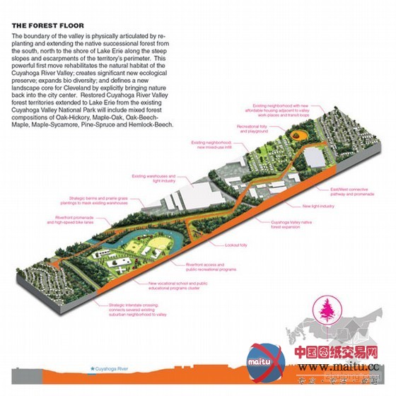 这片区域的内部由九块交叉堆叠的功能地盘组织而成。这些区域供给的功能包含医疗中间、文娱区、居平易近区、农业区、财产区、能源、水体和交通等。这些景不雅区域不是纯真地持续着,而是综合在一路闪现一种整体结果,它充分组织、操纵了低谷地区并对其产生了必然影响。这类设计编制为这片区域创作发现了高度的***感,它不再仅仅凸起中间区域的景不雅体验,而是催化了城镇周边的投资项目,让整座城市获得优良的长远成长结果。