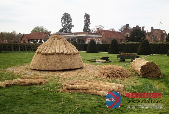 英国艺术家alex chinneck与marcelle joseph projects和master thatcher simon richards合作设计的“under the thumb to hide from the fingers”是一个重1.5吨,17英尺(约5.2米)高的倒置的茅草屋顶。屋顶的倾斜度为10°,这个由芦苇、钢材和松木构成的布局体在风中迟缓摇摆。茅草内部的布局框架是用激光切割机建造的,还焊接了6mm的低碳钢,底部是一个起撑持感化的风向标。雕塑底部安葬了一个重大年夜3吨的浇筑混凝土根本,一个直径为6 米x 60毫米的实心钢棒安装在布局体中间。