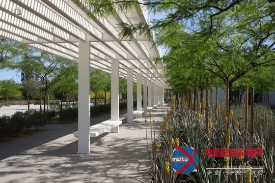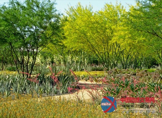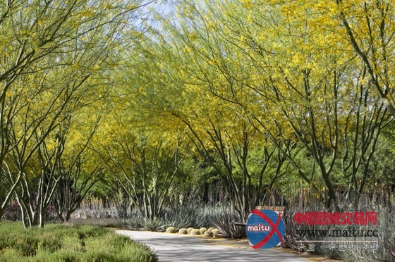 Sunnylands Center and Gardens这个项目位于美国加利福尼亚州兰乔米拉奇,地处戈壁边缘,是一处高尔夫球场的景不雅延长,由The Office of James Burnett (OJB)设计。因为场地地处戈壁边缘,景不雅的可延续成长则成了设计重点,植物多选择合适在戈壁发展的仙人球等植物,同时建设有高机能的毛细管该系统,泥土水分检测和雨水保留装配。该中间是一个戈壁可延续成长绿化的试点项目,正在申请LEED的认证。