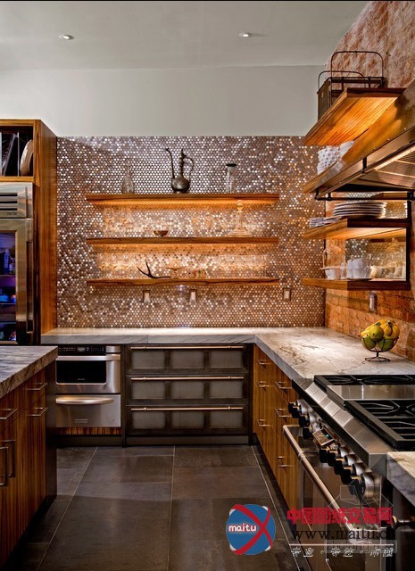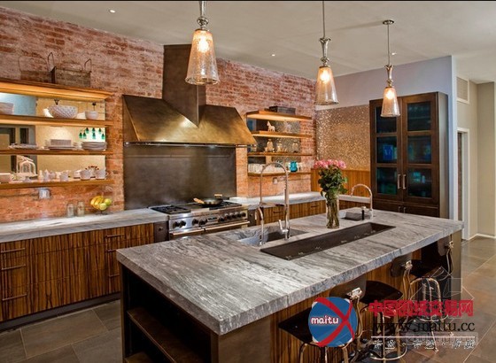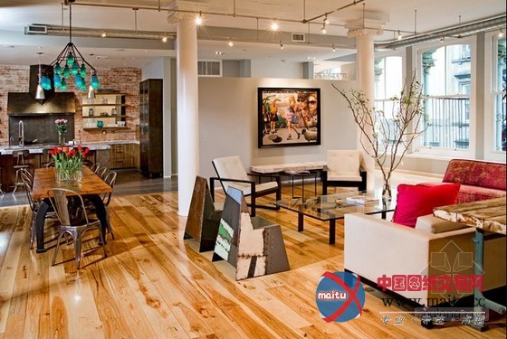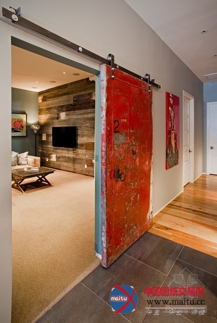 复古财产风的室第设计,国外一阁楼室第,温馨的地板,有些班驳的门窗,有些古旧的家具,厨房***露的墙砖,昏黄的灯光,卧室和卫生间又是十分艳丽厚重的色彩,看起来别扭实则调和,浓浓复古财产风的室第。