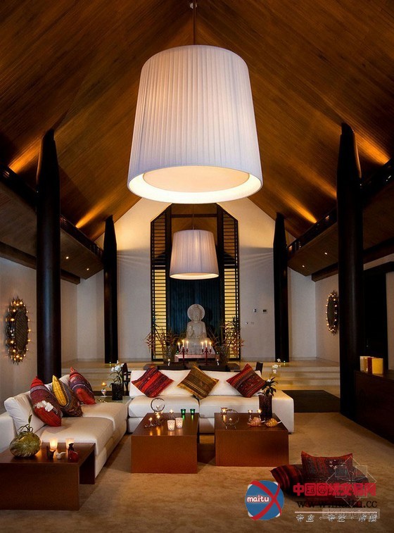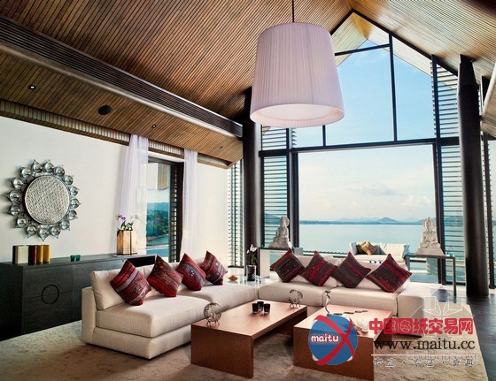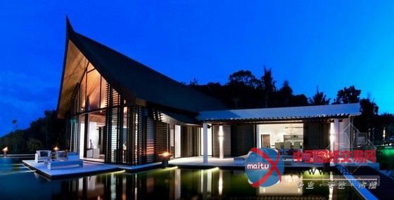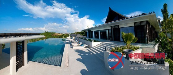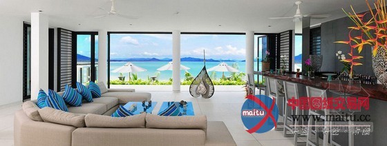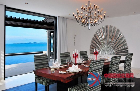 这座壮不雅的海边别墅位于泰国普吉岛东海岸的雅慕角,由闻名设计师Jean-Michel Gathy设计完成,畅通领悟了泰国传统气焰和当代设计。别墅包含六间卧室,家具都是专门定制的,宽阔的客堂里,灰色的沙发,搭配海洋蓝的茶几和靠垫,给人既优雅又活跃的印象。红木餐桌,搭配条纹布沙发及墙上的扇形装潢和吊灯,显得热和而新颖。别墅还设有180平方米的健身房和一个大年夜屏幕影院,和宽大年夜的室外泅水池。