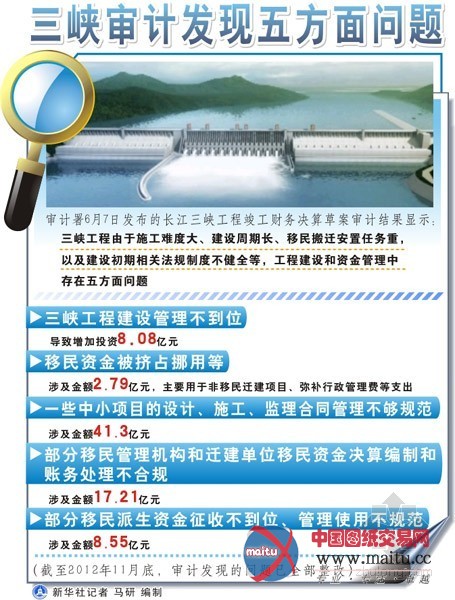 摘要:据审计署网站动静,审计署于2011年6月至2012年2月对长江三峡工程落成财务决算草案进行了审计。审计成果显示,关头工程扶植中,有251项中小项目未按划定进行招标,触及金额13.39亿元。