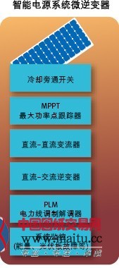 微逆变器用于汇集太阳能等再生能源发电,经由过程电力线调制解调器与智能电网通信。下图所示是一个最新的太阳能汇集系统的布局图。