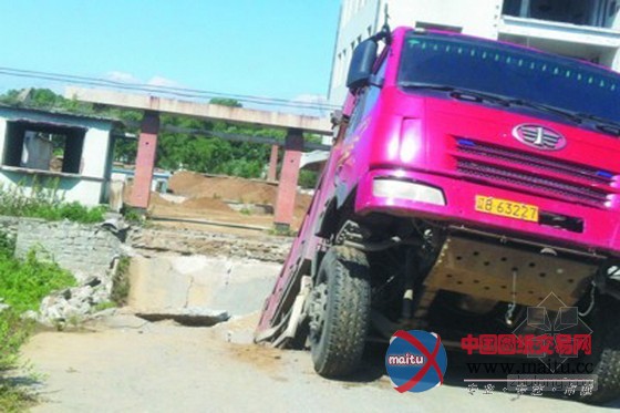 事发后,断桥的南侧桥头已被人拦上了一条鉴戒带,一辆面包车横在桥头,限制行人和车辆经由过程。记者谨慎翼翼地沿着桥面来到货车边,只见车头高高翘起,车后轮胎已被车身巨大年夜的重量压瘪,车上的砂石散落在桥下。桥面坍塌后,破裂的砖瓦石砾和砂石稠浊起来,已掩埋住了半个车轮。