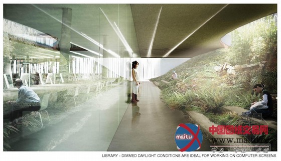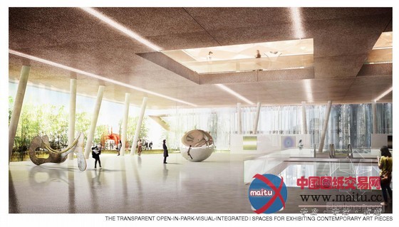内部空间宽阔矫捷,以适应频繁改变的艺术-博物馆和藏书楼的利用需要。两个分楼都有电梯,是垂直向的交通和来访者的定位标识。分楼均由开放式空间与私密式空距离层瓜代,由曲折的地面边缘和弧线形的前庭所界定。每层楼鸿沟的花圃则柔化了从室内向室外过渡的空间设定。私密式空间里,略微暗淡的天然光空气有益于利用电脑,录相视频的播放和安排由点光源照明的精彩物件。通透的开放式空间则用于工作,浏览和揭示现代艺术躲品。