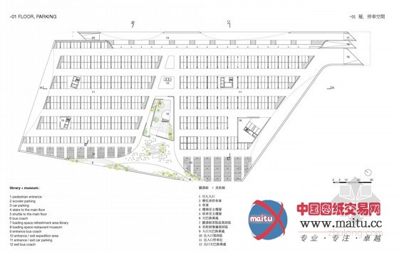 摘要:这是由de Architekten Cie.设计的台中市文化中间比赛方案。由艺术-博物馆和藏书楼两个分楼和共同的底楼构成。