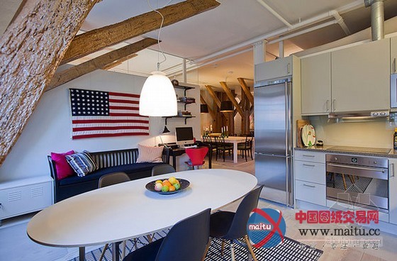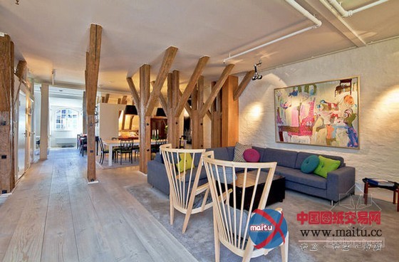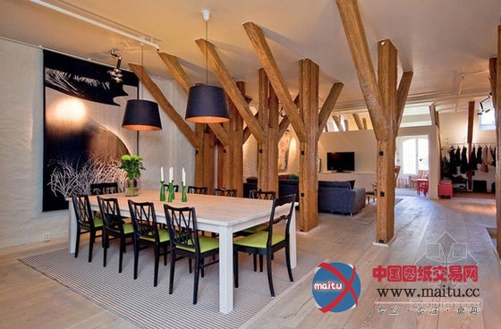 温馨又现代化的原木LOFT室第设计,软装时尚、舒适、清爽天然,十分的温馨又现代化,十分“不搭调”的原木却穿插在整所房子中,仿佛穿越了古今,来混搭主人的房子,现代的小配饰和挂画点亮了全部空间,合理的布局和色采的搭配,都让人感觉舒适天然。
