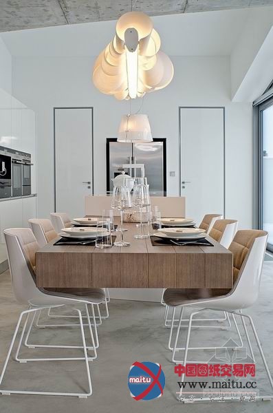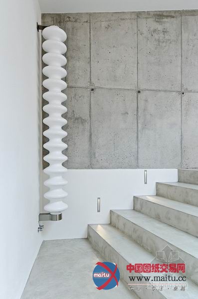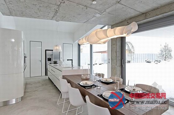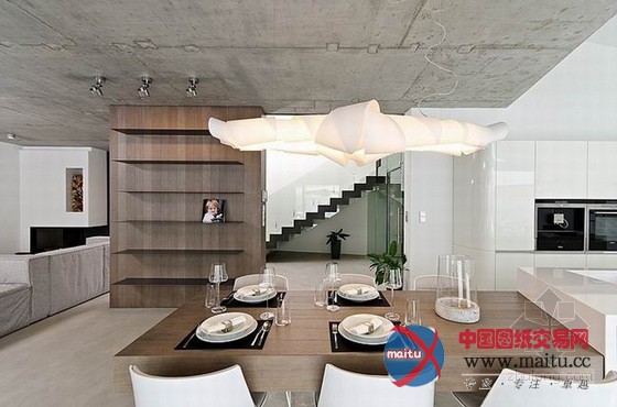 由OOOOX公司设计的现代室第位于捷克Osice,设计的核心是简约。整体线条精练流利,布满现代感与冲击力。天花板直接利用大年夜面积的灰色混凝土,纹理天然丰硕,并且以不法则的外形倾斜着。功能分区开放清晰,表现出阳刚与理性。灯具是整座别墅的一大年夜亮点,布满了艺术感与创作发现力。