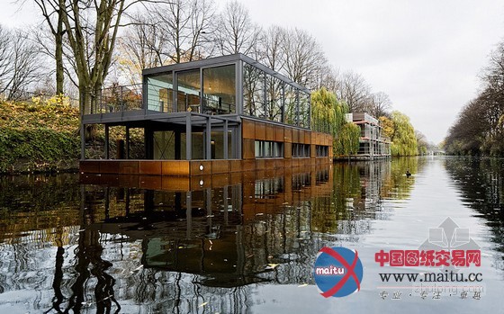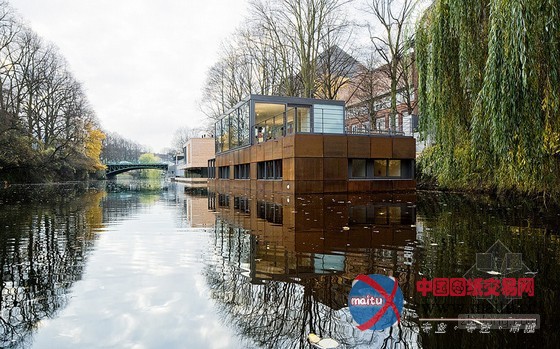 德国建筑事务所sprenger von der lippe比来完成了“houseboat on the eilbek canal”(eilbek运河船屋)项目,这是座水上室第建在德国汉堡eilbek运河上,位于两座桥梁之间。船舶的系泊处位于街道标高低方,倾斜的河岸与天然植被相连,这座室第用恬静隔尽的空间空气为栖身者供给了一种内向性的栖身体验。与水面相连的楼层中安插有卧室等功能空间,河堤上原本的天然地形为卧室供给了需要的私密度,而起居室则正好可以远眺波光涟漪的河面风光。