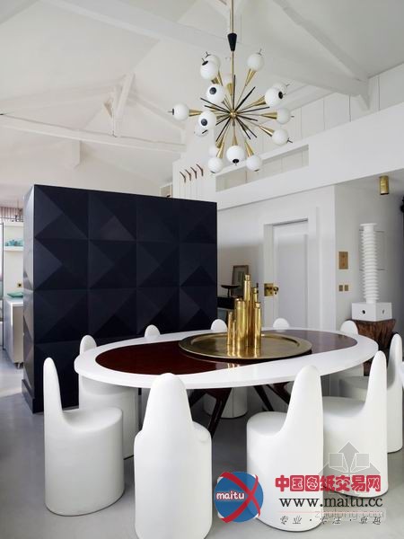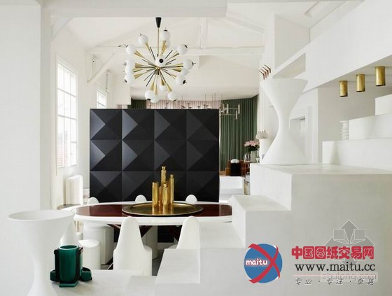 纽约时尚设计师 Yvan Mispelaere 的家,位于在一个荒废的马戏团里,黛安·冯芙丝汀宝的明星创意被改革成一个时尚优雅的现代空间。起首,空间的配色丰硕多彩,却又十分淡雅清爽,奶油白的主色搭配抹茶绿、磨砂黑与金黄色,举手投足透露出一种法度的崇高与浪漫。其次,这里的装潢品其实太多元了,色采比较类似,气焰也很调和,看得出主人有本身奇特的咀嚼。灯具、家具、配饰无一不布满艺术感。厨房被包裹在一个钻石切割立面的“黑匣子”中,低调的豪华感令人折服。