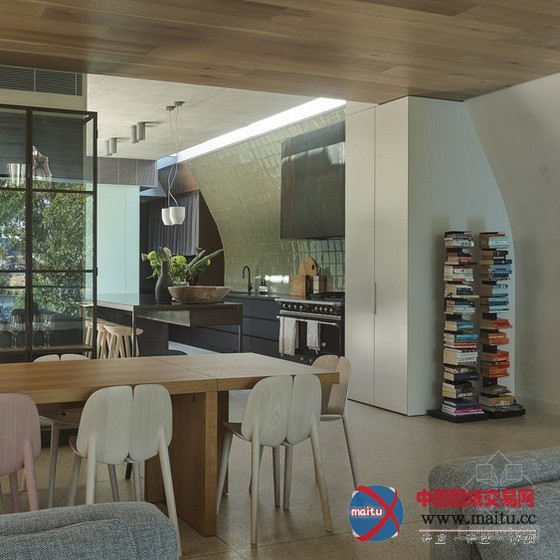 澳大年夜利亚室第设计2013得奖作品,Park House全部建筑布满了设计感,自由勾当,却又尽不做作从植物过度到房内,不需要颠末色彩衬着的墙壁和大年夜理石地面,部门的木质屋顶和橱柜都在明示着它和天然的畅通领悟,淡淡的烟灰色系沙发带来气质感,没有多余的色采和配饰,一切看起来却又那么的***,美好。