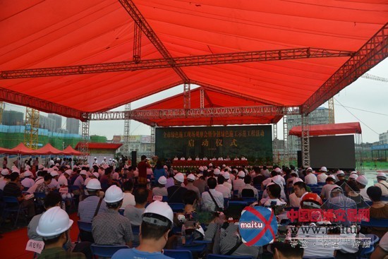 武汉市绿色施工现场不雅摩会暨争创绿色施工示范工程勾当启动典礼现场。