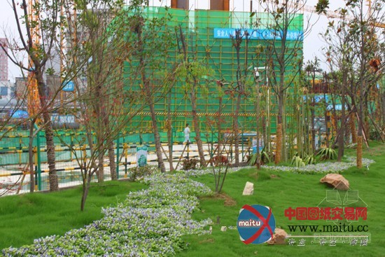 硚口金三角越秀星汇云锦项目施工现场绿草茵茵。