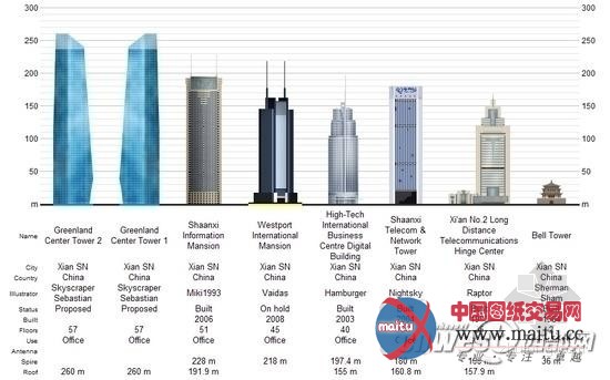 【摘要】2013年6月27日,“烂尾”了良多年的陕西信息大年夜厦终究落成,并以228米成了西安最高的建筑。而几个月前,两座设计高度达到200米的双子塔建筑也在西安高新区奠定,并在2012年时将建筑设计高度拔高到270米。合法双子塔在如火如荼的扶植时,位于八里村的四幢摩天建筑开工,此中两幢高度将达到280米,将成西安最高。