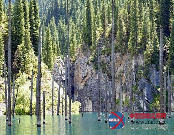 哈萨克斯坦的凯恩蒂湖海拔2000米,长400米,某些区域的深度接近30米。真正让这个湖泊名声大年夜噪的功臣当属已干涸的雪岭杉树干,构成一片壮不雅的水中丛林。远远看往,这些树干酷似神秘沉船的桅杆。