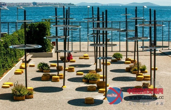 “这是光和韵律的盛典”项目裁判组的主席Suha Özkan说道。班驳的反射光线在暗影上跳跃,为周围环境带来动感。金属撑持标杆摇摆的声音和图象像极了停靠港口船只的船杆,在海洋和陆地之间构成有趣的对话。