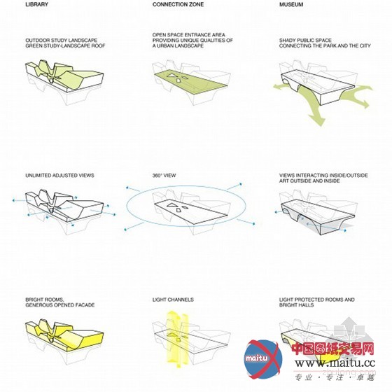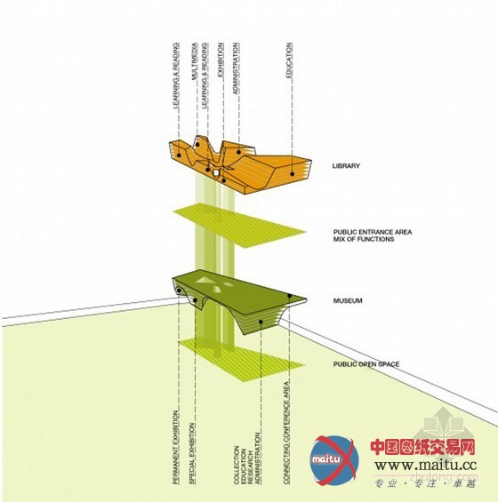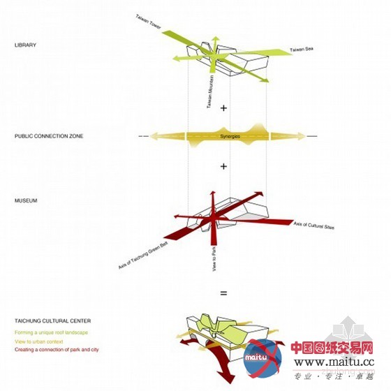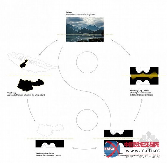 这是由奥地利建筑事务所Alleswirdgut和台湾建筑事务所keystone architects共同设计的台中市文化中间比赛项目。设计师将山岳堆叠的岛屿形态运到了台中市区的公园。深色的剪影创作发现出基层阴凉的公共空间和上层布满阳光的露台。