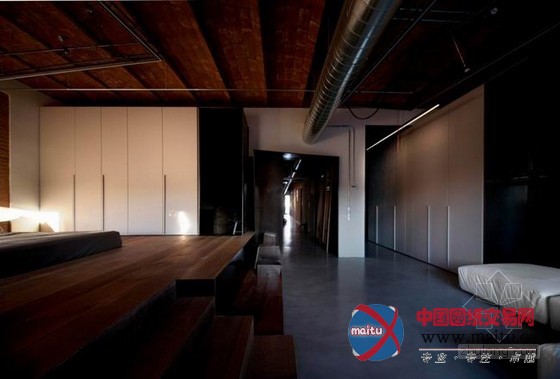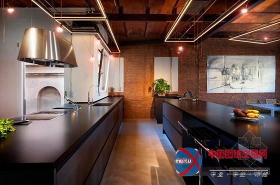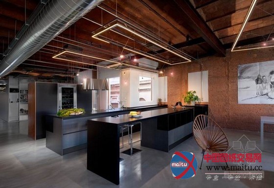 西班牙这座稠密财产风室第装修设计,房顶天然的揭示了木条和一根根水管,巨大年夜的玻璃窗使阳光可以晖映进来,白色为主的书房共同清爽木质的利用显得宽阔敞亮,拾级而上的书厨做得很有特点,从厨房开端融进了黑色元素,红色的砖墙和那副素描显得随便安适,卧室和浴室都是黑色为主的深色调,整体在宽阔的空间中带点深色财产风的压抑,家具软装颇具特点,值得回味。