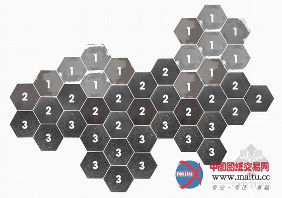 雕塑的形象是用三种不合的六边形黑色瓷砖建造的,这类编制使得整体建筑看起来有层次感,且不合于它升起的地面。像素化的外部梯度上升,从磨砂质感的人行道到珐琅抛光面,都可以反射光。经由过程混凝土撑持悬链线曲线,削减其厚度,在城市范围内建造出了一个凸起的手势。蜿蜒的曲线是由瓷砖的蜂窝模式,将珐琅磨砂后,以纹理梯度的编制摆列的。白色的混凝土抛光后,可让光线渗入到地铁的进口。