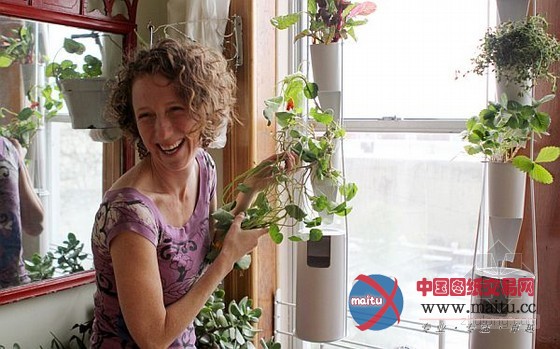 这是由美国纽约布鲁克林区的Britta Riley设计的Windowfarm窗户农场垂直花圃。这个模块式的花盆系统可以吊挂在窗户上,让植物享遭到发展所需的天然光线。