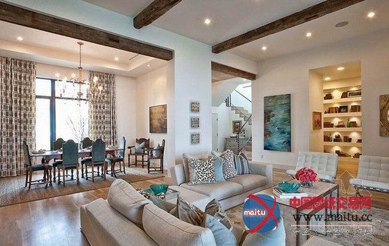 这套德州奥斯汀别墅装修,精美优雅的外不雅配有不俗的内饰,进进大年夜厅便会被深深吸引,雪白洁净的墙壁,原木色的地板,哪怕是部门***露的墙砖都反对不了他的优雅,舒适的家具,那种Tiffany似的蓝色点缀着全部室第,家中多件艺术品配饰突显了主人的咀嚼,一些用心做旧的家具显得天然亲和,富丽却又舒适天然,体验美式的优雅浪漫。