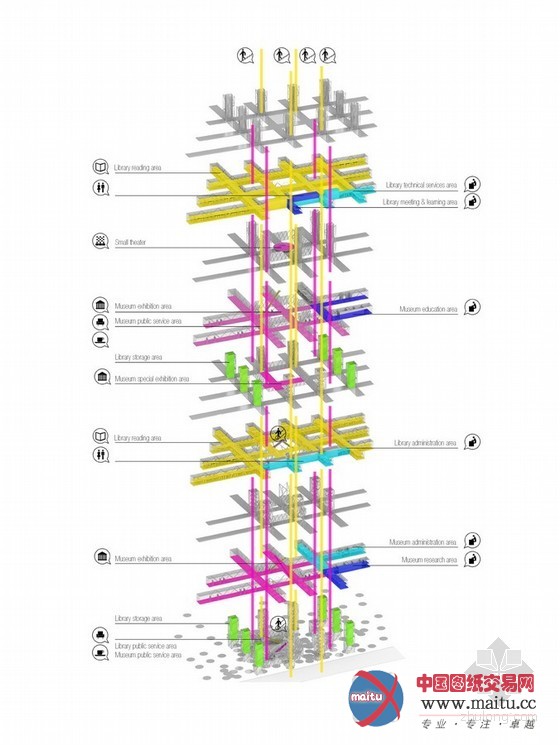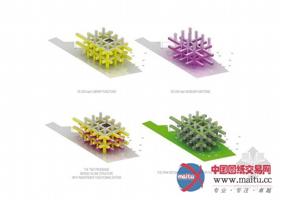 该建筑将承载藏书楼和博物馆功能,并且还将承载第三个功能,也是很是首要的一个功能--公园。这将创作发现出一个独一无二的复杂公共空间。同时又可以供给多样化的分层体验。全部建筑供给了彼此自力的空间,并在一层共享一个1500平方米,层高24.5米的公共大年夜厅,这一公共大年夜厅也能够作为展览之用。在设计过程中,一个关头的原则就是可延续成长。一个建筑友爱型,和天然畅通领悟型的建筑才是我们的最终寻求。这座建筑的节制系统可以或许主动节制季候,日夜的改变和同化通风的模式。