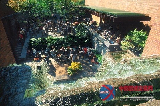 一个用水做成的雕塑,被作为建筑的前门,这类简约的情势指导人们进进园内,并且以略微升高的人行道纵贯奥林匹克公园和中间区。中间区是由桌子和椅子不法则的漫衍此中。在这里有充沛的作为可以供游人利用。即便是在午餐时候或供给食物或咖啡小店的人流岑岭期,这些坐位都可以充分的知足这一地区一天的需要。高大年夜的皂荚树在这地区发展的很好,阳光晖映过来的时辰,这些树木构成的阴凉区可以很好的乘凉,如许的景不雅也与周围的建筑构成很好的搭配。在低坐位区,游人们可以很好的亲近水域。旁边墙壁崛起的平台,和全部公园的视图都可以倒影到在水面上。风景很是的美好。这个平台的屋顶是用丙烯酸做成的穹顶,配有照明系统和供夜晚和酷寒气候下利用的辐射供热设备。
